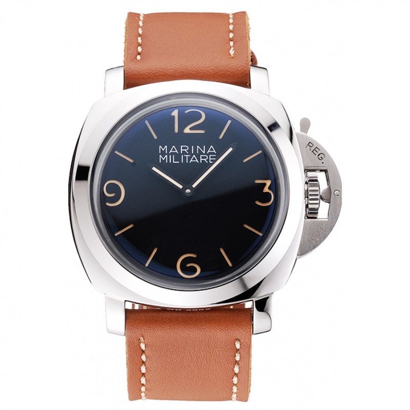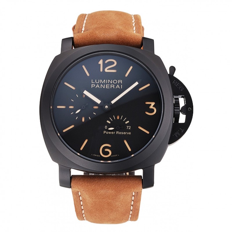 Lujo Réplicas Relojes Panerai Luminor Marina Negro Dial pulsera de cuero marrón