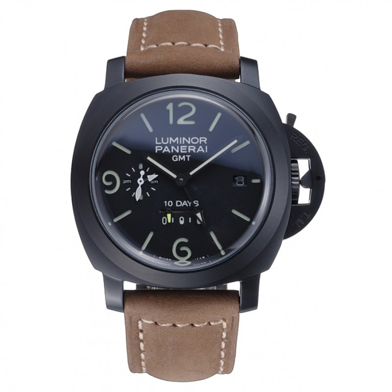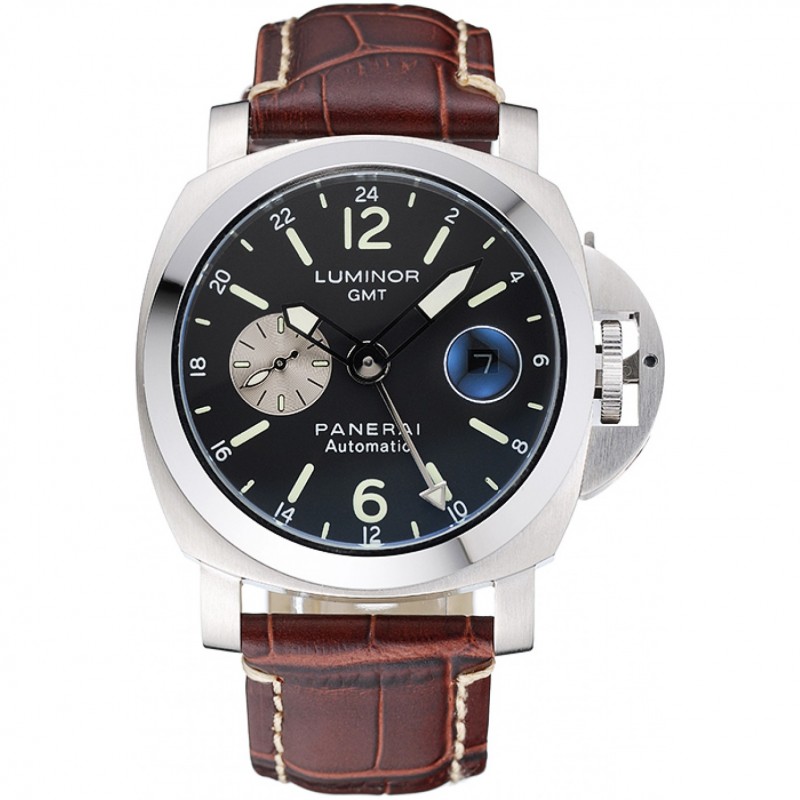 Panerai Luminor GMT Negro Dial pulsera de cuero marrón