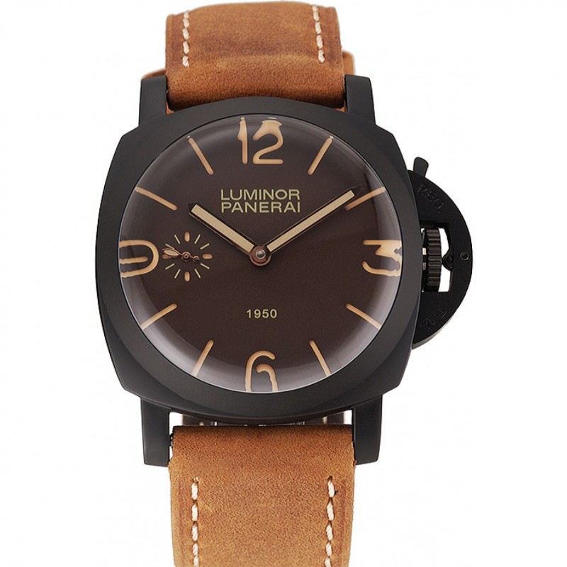 Suiza Panerai Luminor 1950 Correa de cuero marrón Dial Negro PVD caja de gamuza marrón 1453848