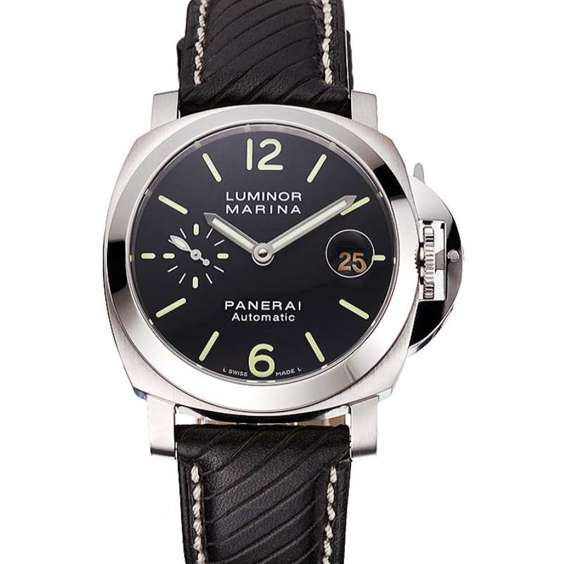 Alta calidad Suiza Panerai Luminor Marina Negro Dial correa de cuero caja de acero inoxidable Negro