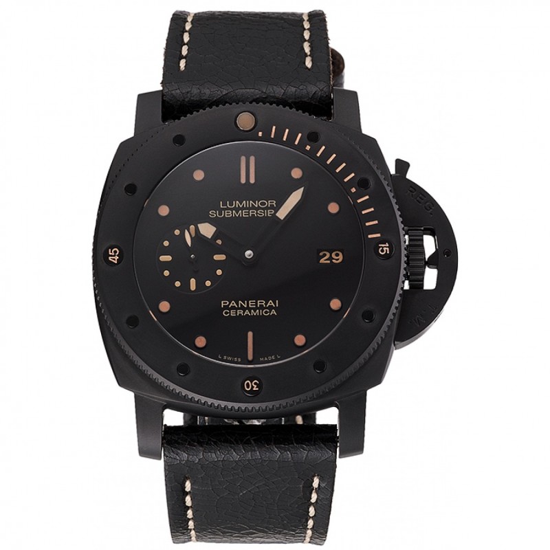AAA Suiza Panerai Luminor sumergibles 3 Días Negro Dial correa de cuero de la caja Negro Negro