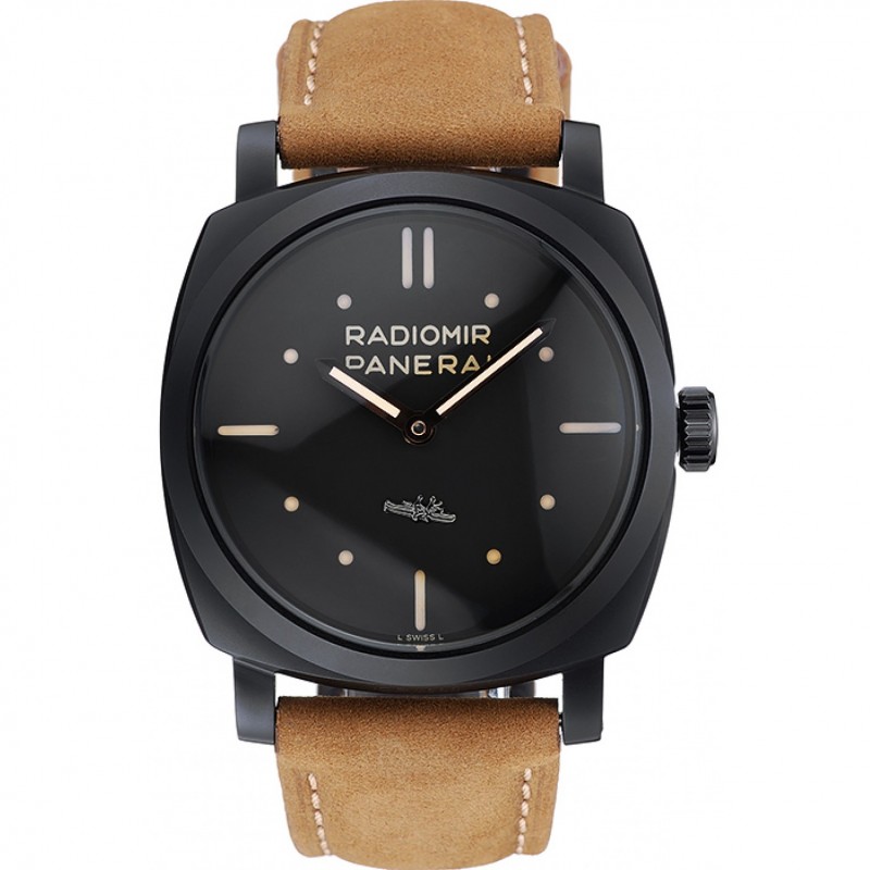 Panerai 1940 3 Días Ceramica Negro Dial Brown pulsera de cuero 1454229