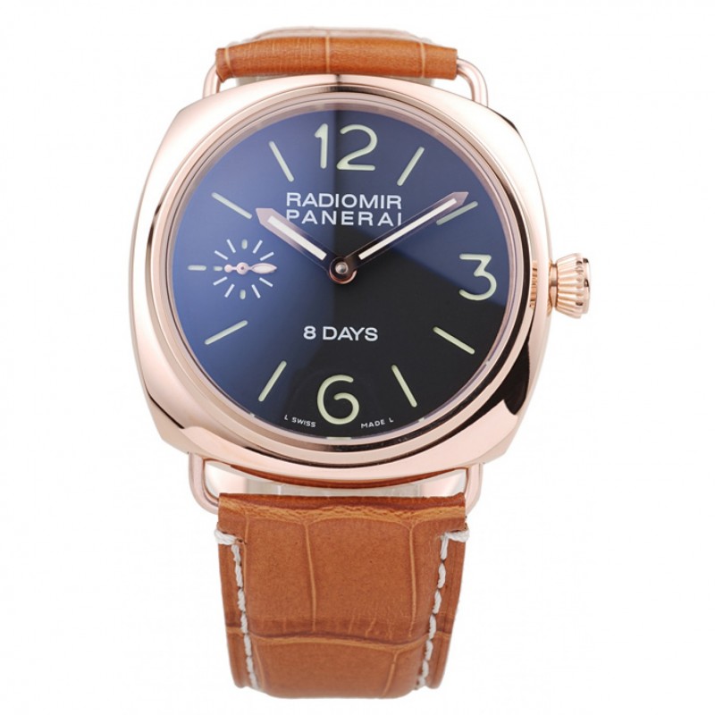 AAA Réplicas Relojes Panerai Rose Negro Caja Oro Dial correa de cuero marrón 98136