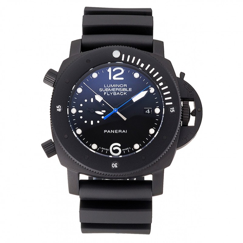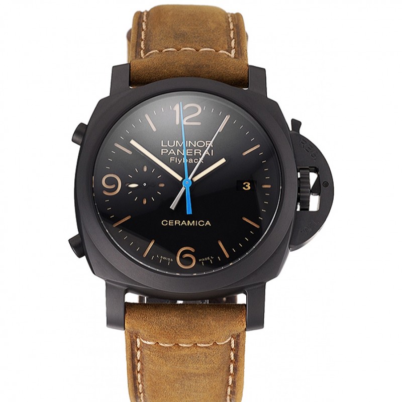 Suiza Panerai Luminor Flyback cronógrafo Ceramica Negro Dial correa de cuero de la caja Negro Marrón