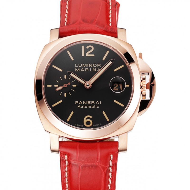 Suiza Panerai Luminor Marina Negro Dial correa de cuero de oro rosa roja Caso