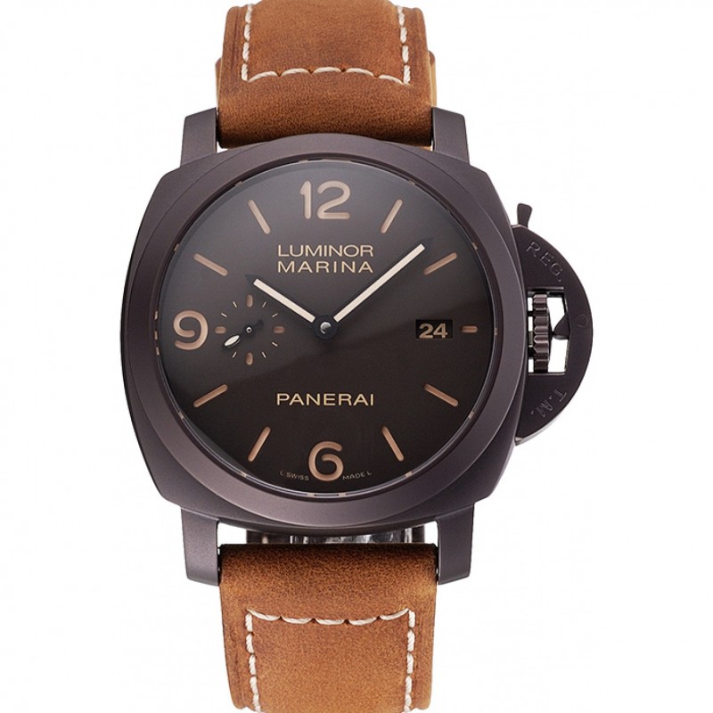 Suiza Panerai Luminor Marina 1950 3 Días Brown Dial correa de cuero de la caja Negro Marrón