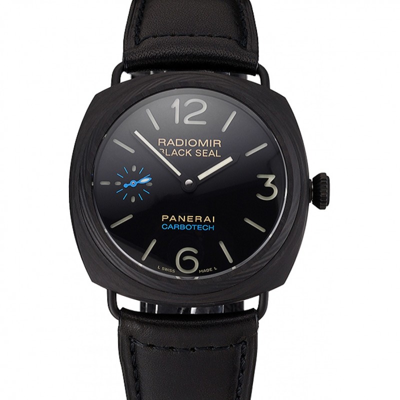 Lujo Réplicas Relojes Suiza Panerai Negro Sello Carbotech Negro Dial correa de cuero de la caja Negro Negro