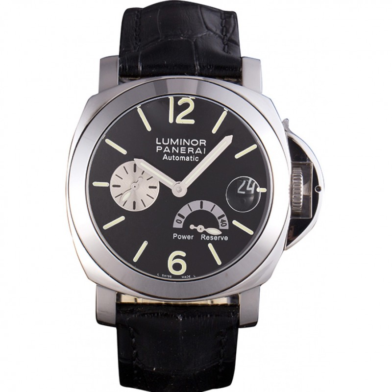 Panerai Luminor Power Reserve Negro Dial pulsera de cuero Negro