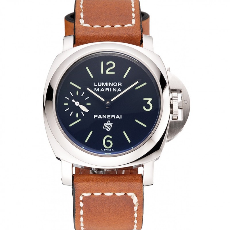 AAA Caso Panerai Luminor acero inoxidable cepillado Esfera Azul Correa de cuero marrón