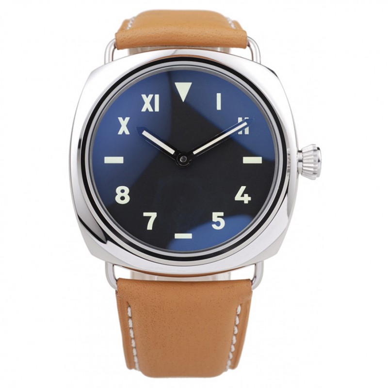 Panerai acero inoxidable pulido Caso Negro Dial correa de cuero marrón 98160