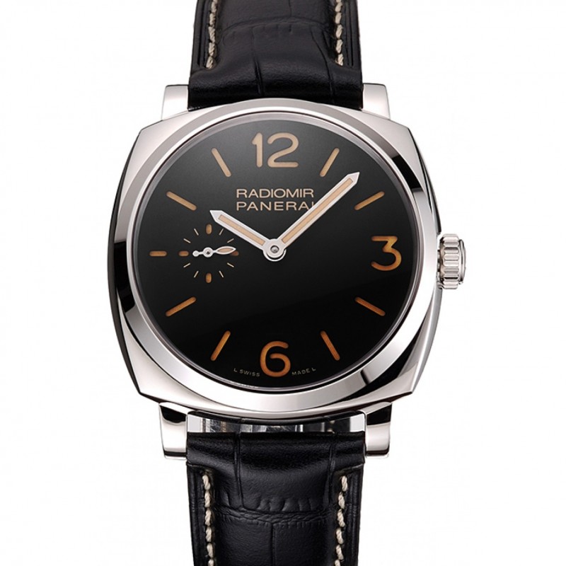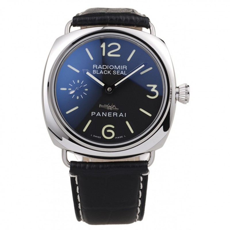 Barato Panerai Negro Dial pulsera de cuero Negro