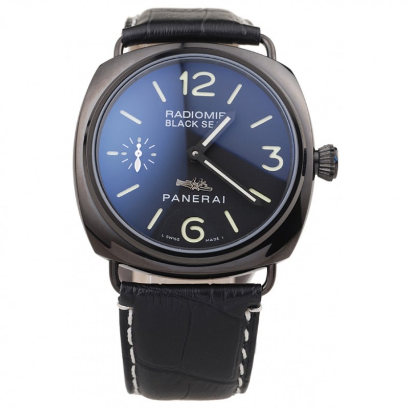 Panerai Negro Sello Negro Dial pulsera de cuero Negro