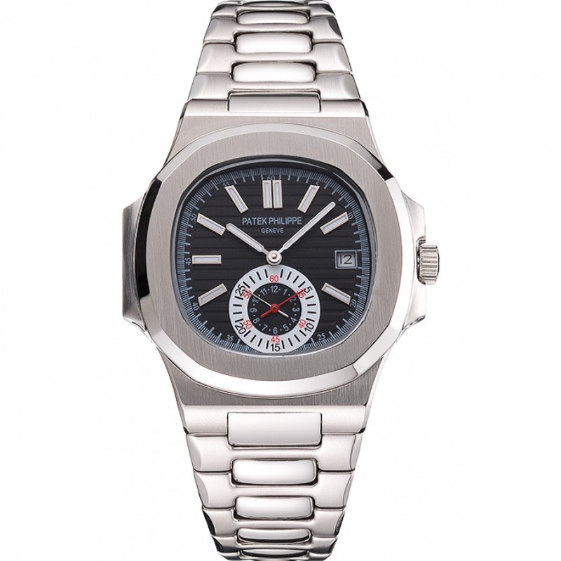 Patek Philippe Nautilus Negro Dial Caja de acero inoxidable y pulsera