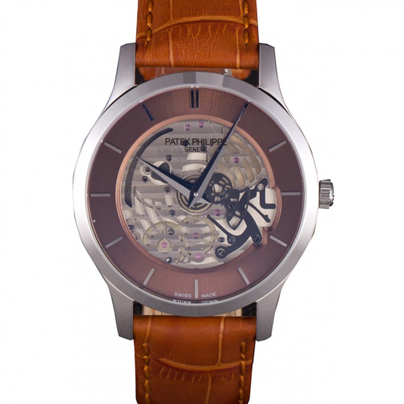 Mejor Las complicaciones Patek Philippe Brown Dial pulsera de cuero marrón