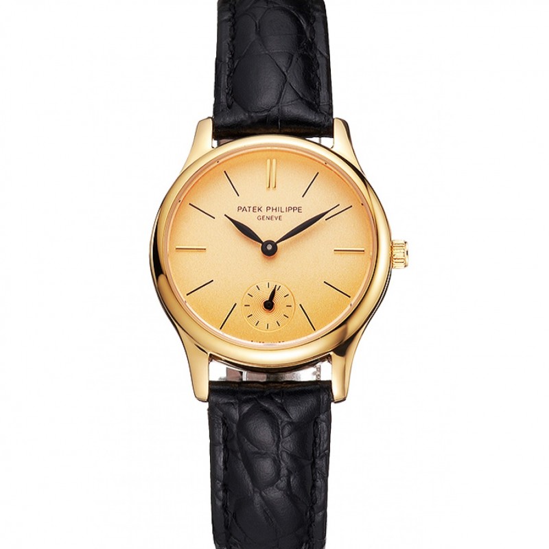 Dial Patek Philippe de oro y correa de cuero Case Negro Oro