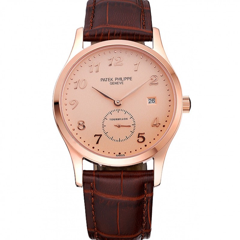 Patek Philippe Rose Dial Oro Rosa Caso Brown correa de cuero 622836