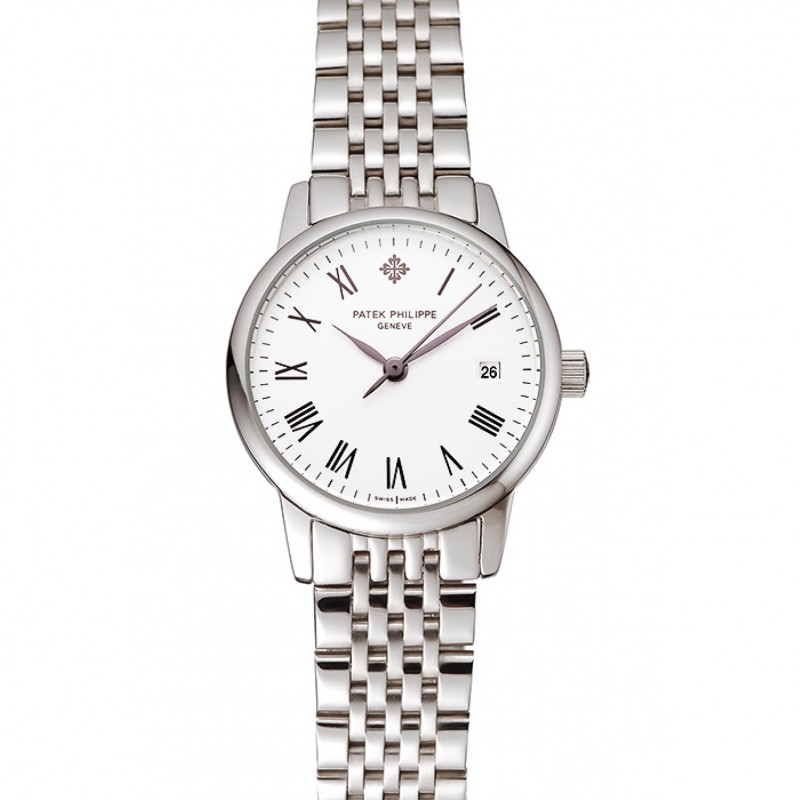 Patek Philippe Damas Blanco Dial Caja de acero inoxidable y pulsera 1453834