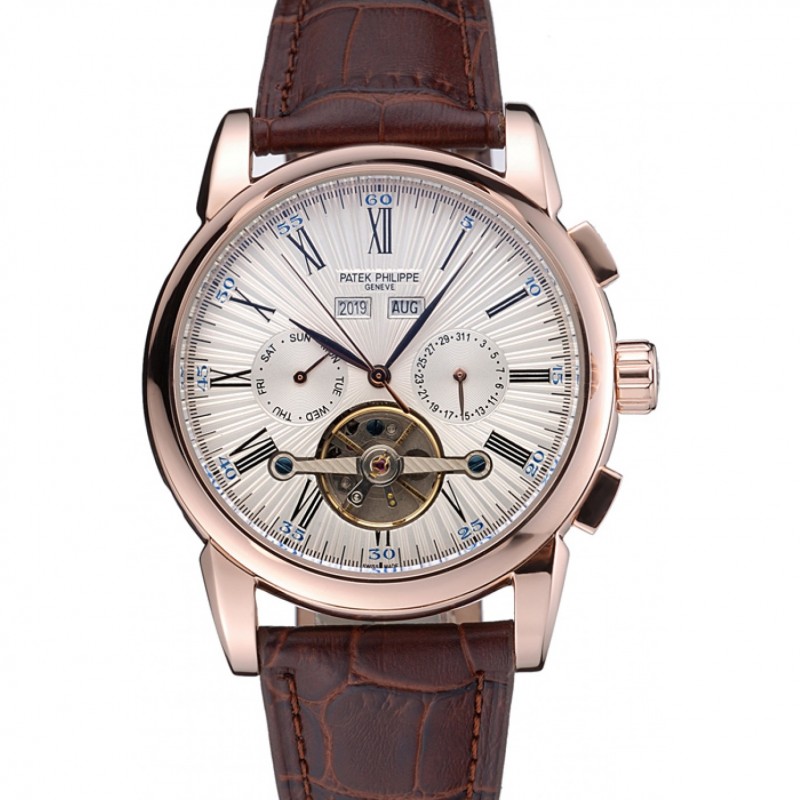 Patek Philippe Grand complicaciones Caja Oro Esfera Blanca, los números árabes Brown pulsera de cuero 622255