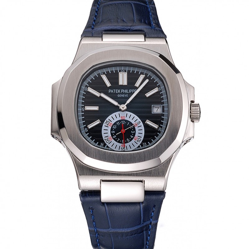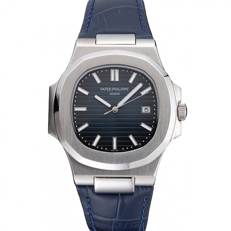 Patek Philippe Nautilus azul Dial correa de cuero caja de acero inoxidable Azul