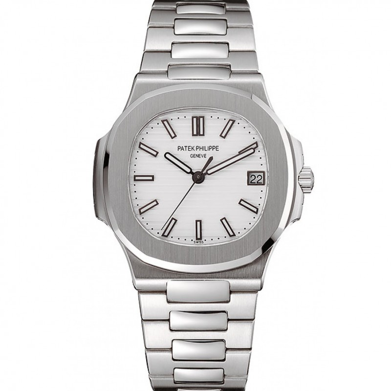 Suizo Patek Philippe Nautilus esfera blanca pulsera de acero inoxidable 1453946