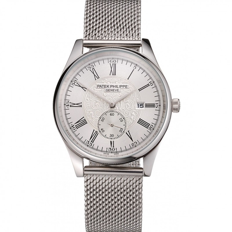 Patek Philippe Calatrava pequeños segundos grabada plata Dial Caja de acero inoxidable y pulsera