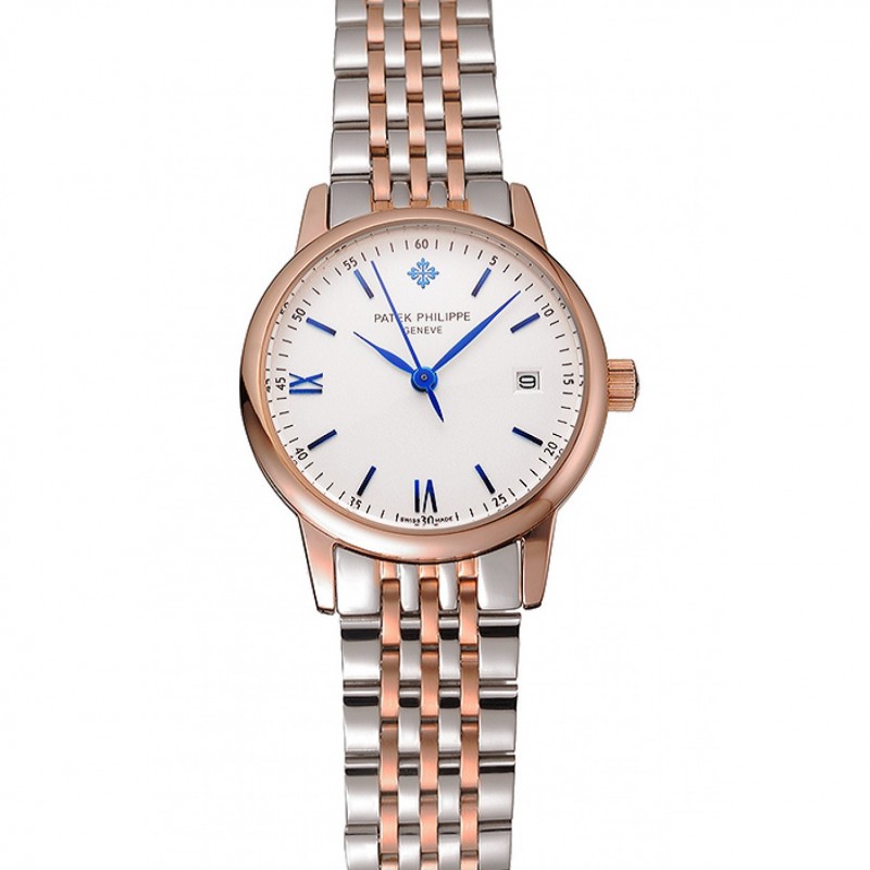 Patek Philippe Damas Blanco Dial de oro rosa azul brazalete de dos números de tono 1453830