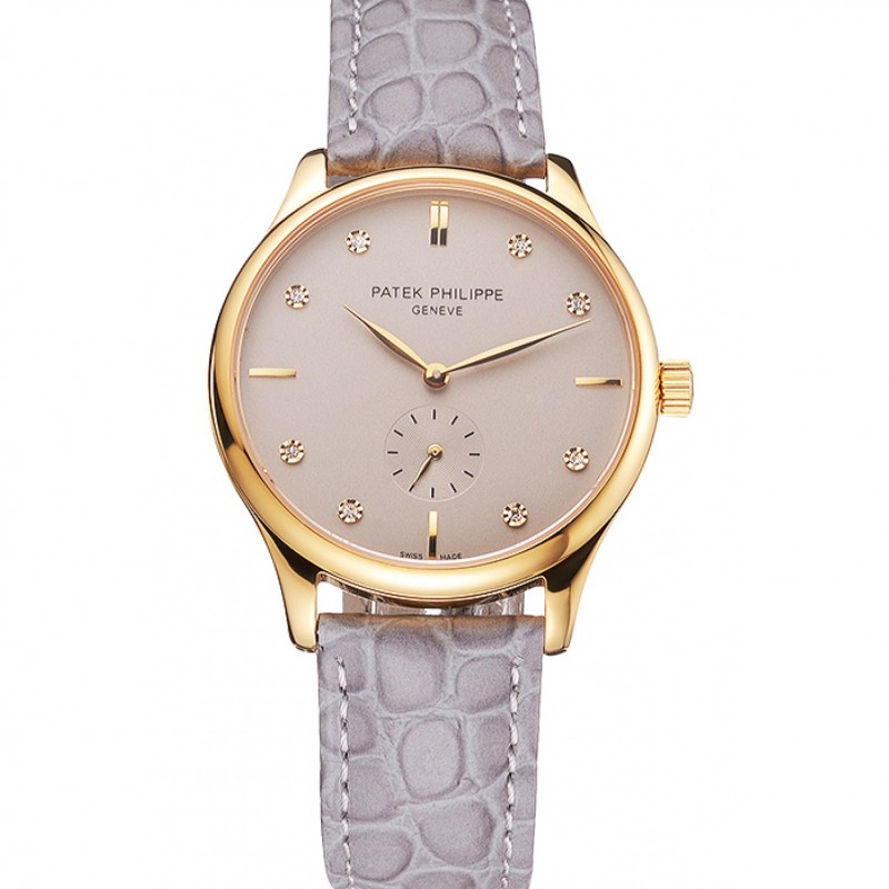Patek Philippe Gris Dial correa de cuero del diamante Marcas Caja Oro Gris