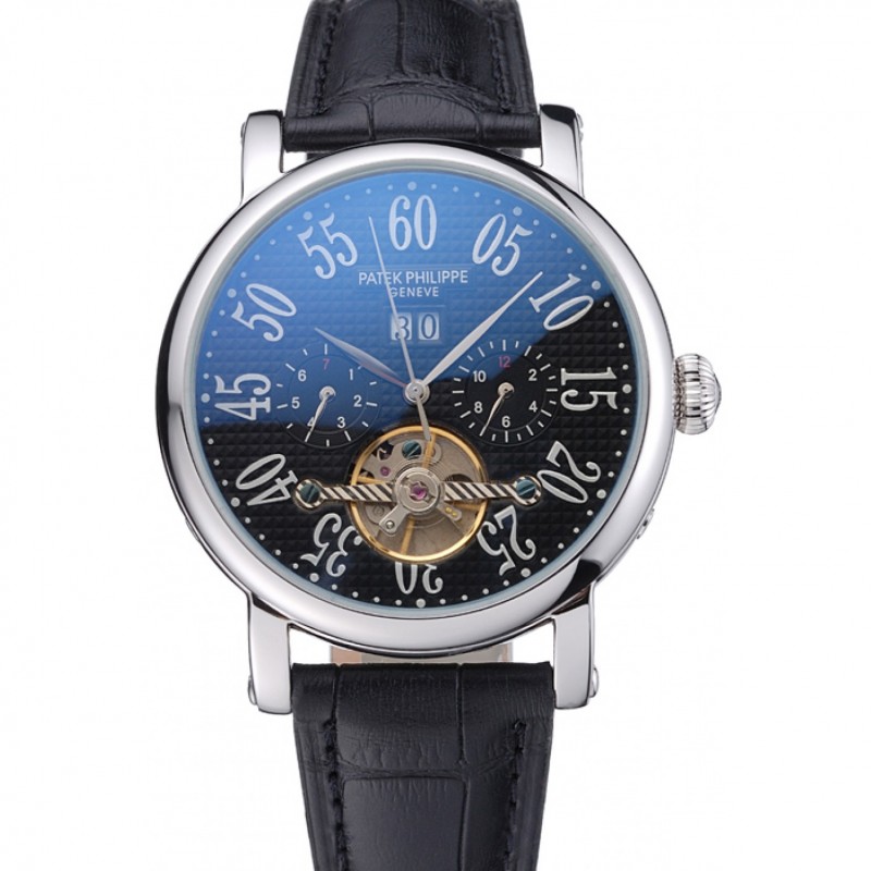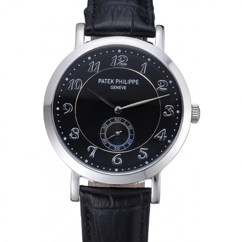 Patek Philippe Grand complicaciones caja de acero inoxidable Dial Negro números romanos Negro Pulsera de cuero 622256