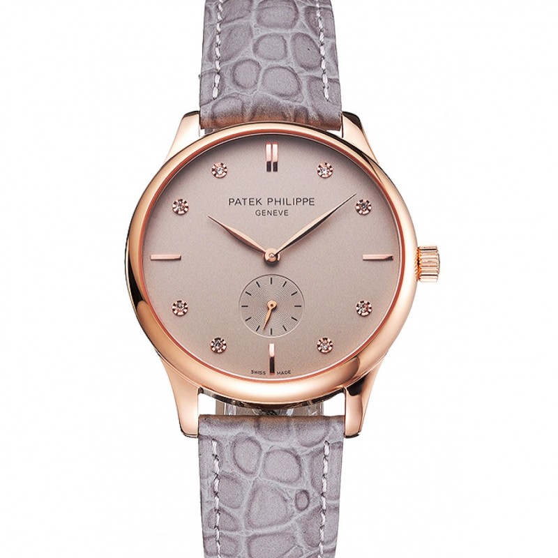 Patek Philippe Gris Dial correa de cuero del diamante Marcas Caja Oro Rosa Gris