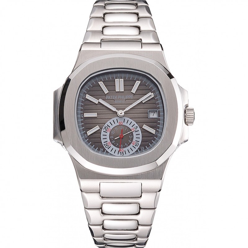Lujo Réplicas Relojes Patek Philippe Nautilus Esfera Gris Caja de acero inoxidable y pulsera