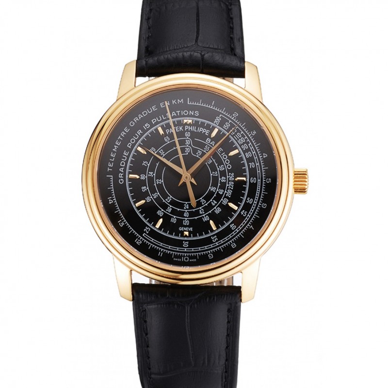 Suizo Patek Philippe Multi-Scale Cronógrafo Negro Dial correa de cuero de la caja Negro Oro