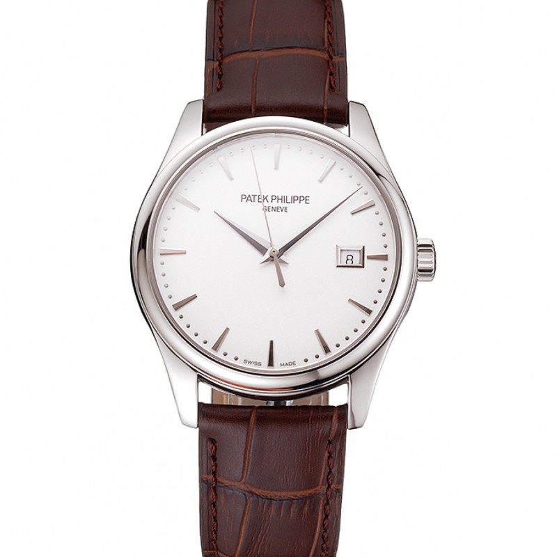 Suizo Patek Philippe Calatrava Blanco Dial correa de cuero caja de acero inoxidable de Brown