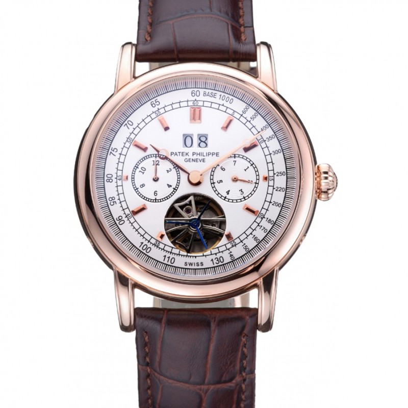 Patek Philippe Geneve Grand complicaciones Esfera Blanca Tourbillon de oro rosa Bisel Brown Band 622156