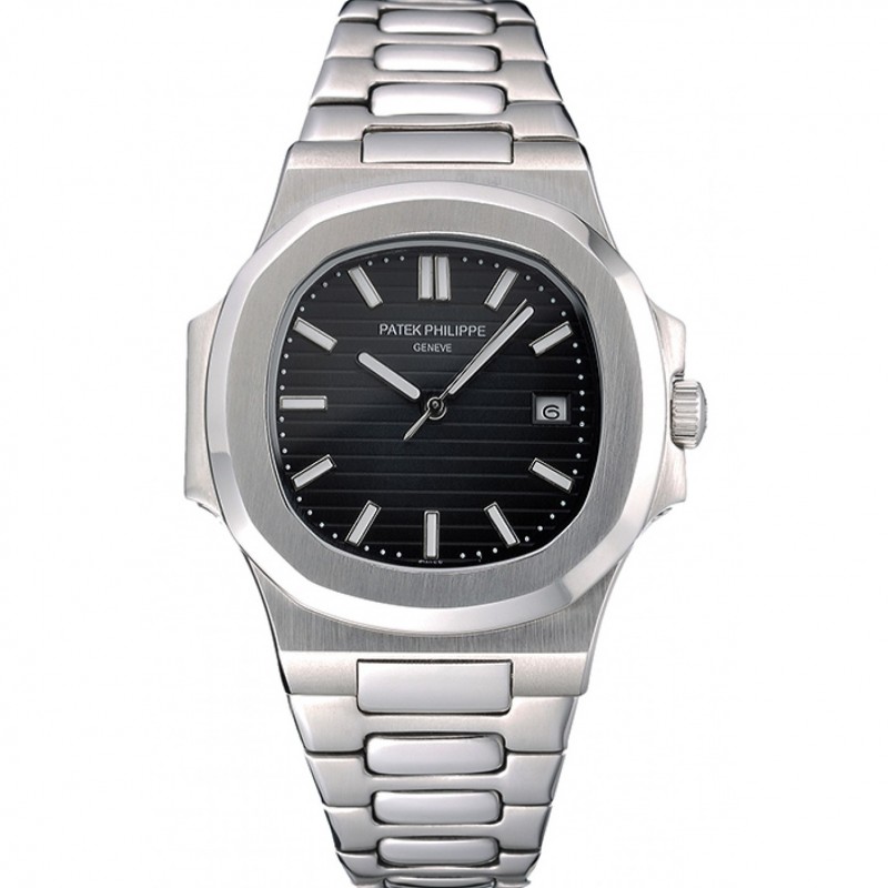 Patek Philippe Nautilus Negro Dial caja de acero inoxidable 622719