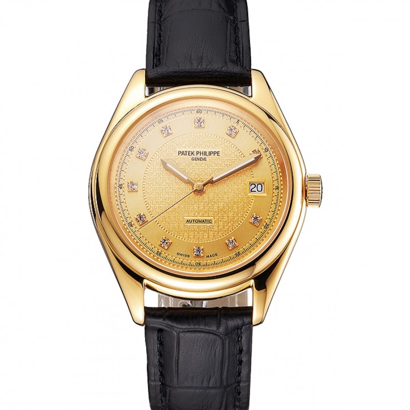 Suizo Patek Philippe de oro Dial correa de cuero del diamante Marcas Caja Oro Negro