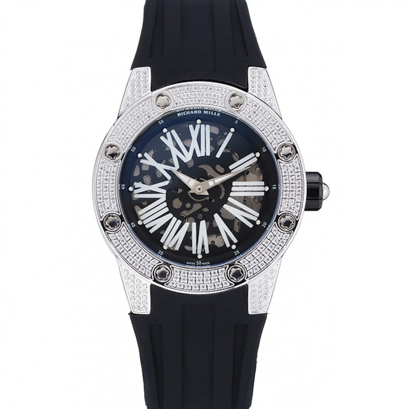 AAA Richard Mille RM 033 pulsera extra plana Automática la caja del diamante de goma Negro 1454195