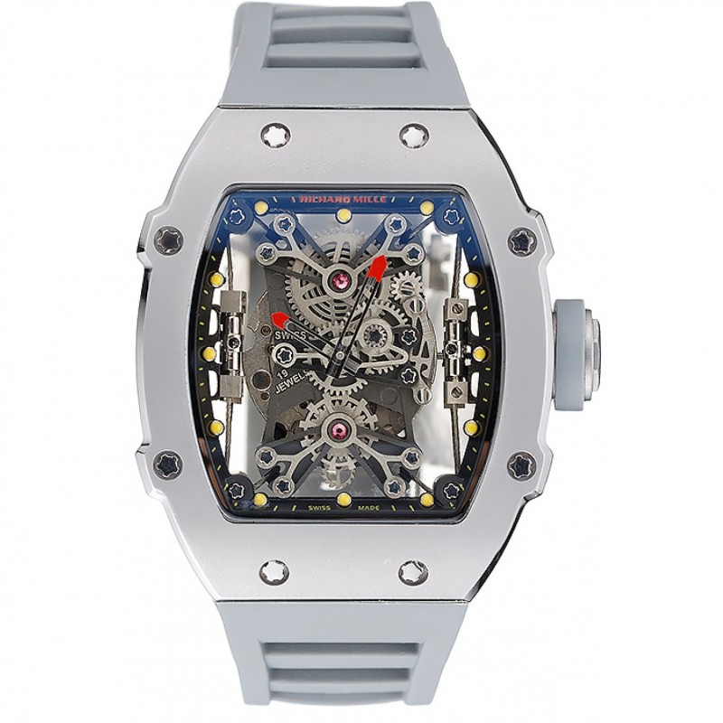 Richard Mille RM Tourbillion Rafael Nadal 27-01 pulsera de goma blanca de plata del caso 1454255