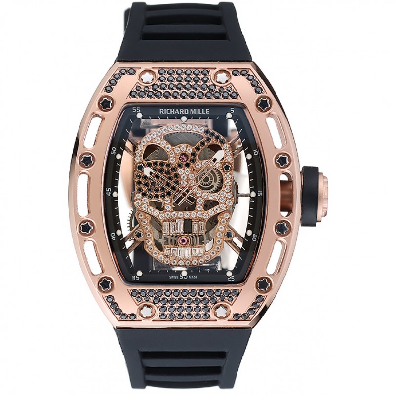 Richard Mille Tourbillon RM 052 cráneo Caja de oro rosa pulsera de goma Negro 1454252