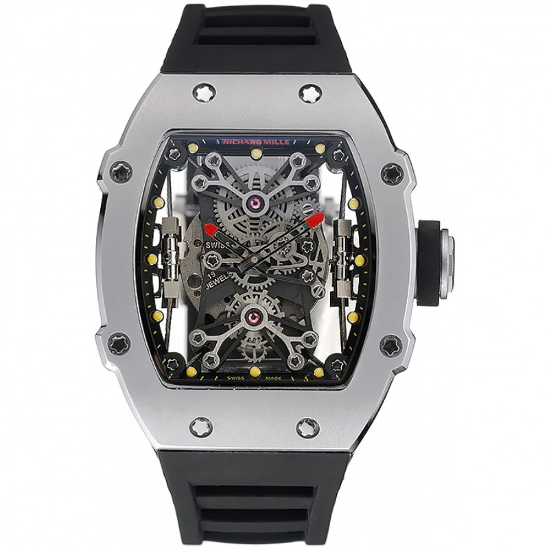 Gama alta Richard Mille RM 19-01 Tourbillion araña pulsera de goma de la caja de plata Negro 1454256