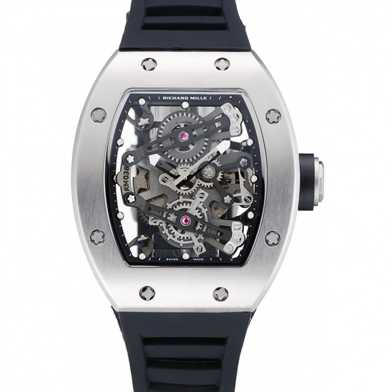Richard Mille RM 038 pulsera de plata del caso de goma Negro Bubba Watson Tourbillion 1454202