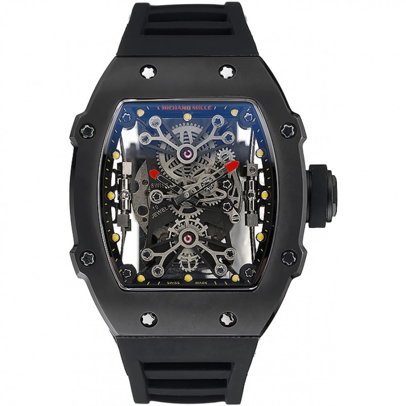AAA Réplicas Relojes Richard Mille RM Tourbillion Rafael Nadal 27-01 pulsera de goma de la caja Negro Negro 1454253