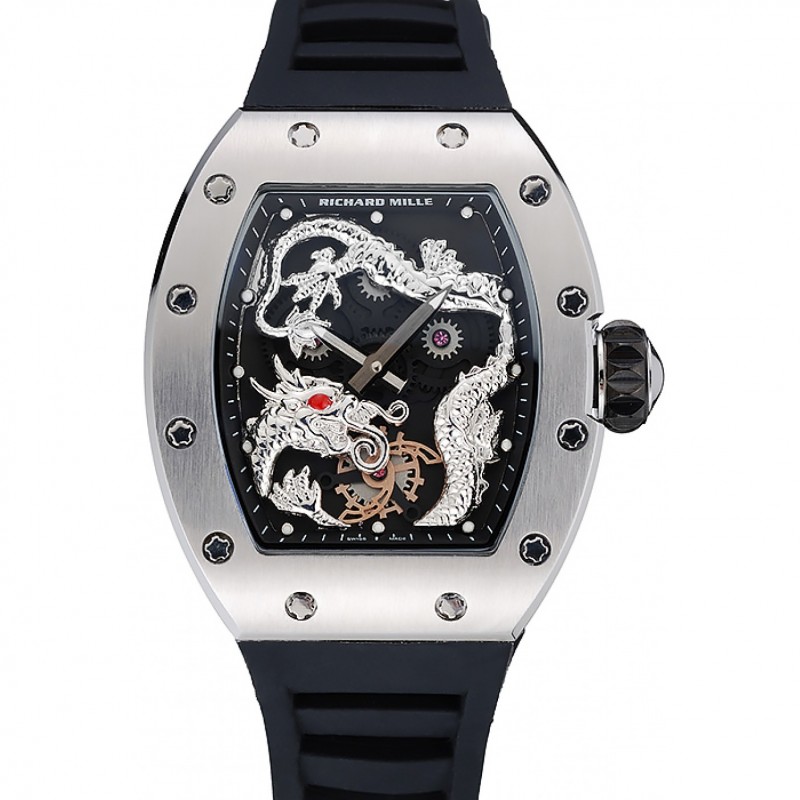 Richard Mille RM 057 pulsera de plata del caso de goma Negro Tourbillon Dragón Jackie Chan 1454201