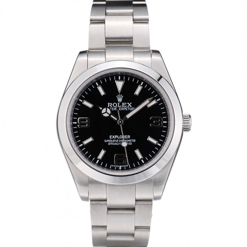 Dial Rolex Explorador de acero inoxidable Bisel negro