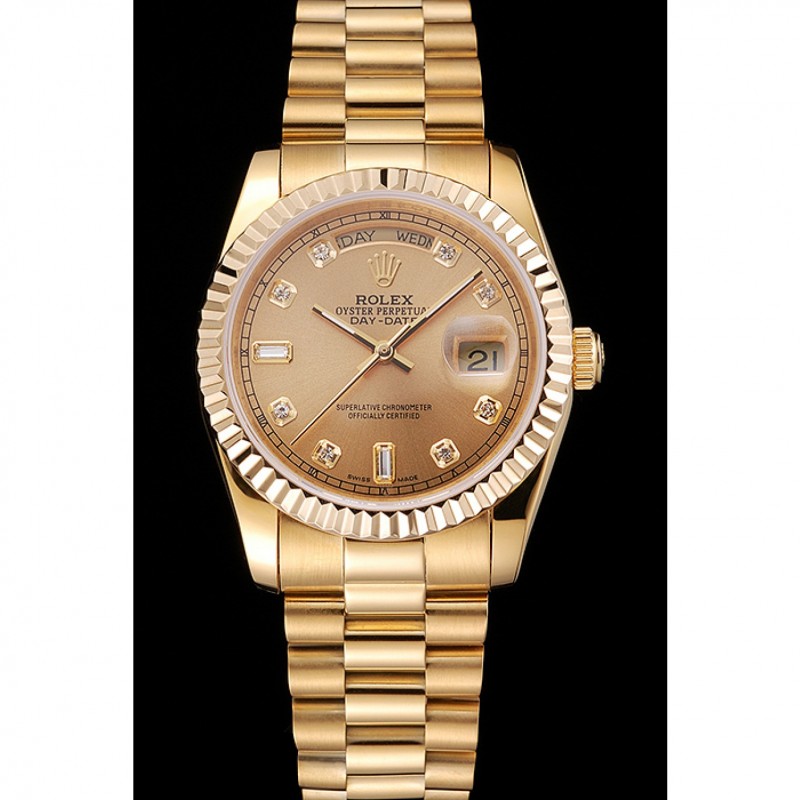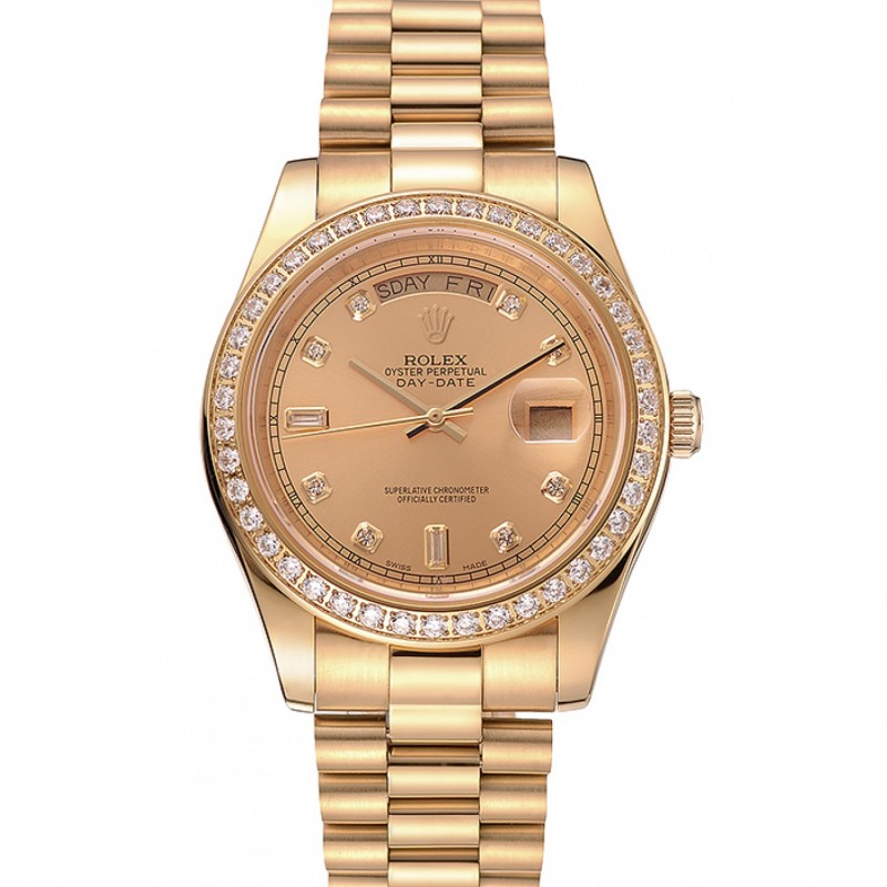 Suiza Rolex Day-Date Champagne Dial Diamond Bisel de oro pulsera 1454099