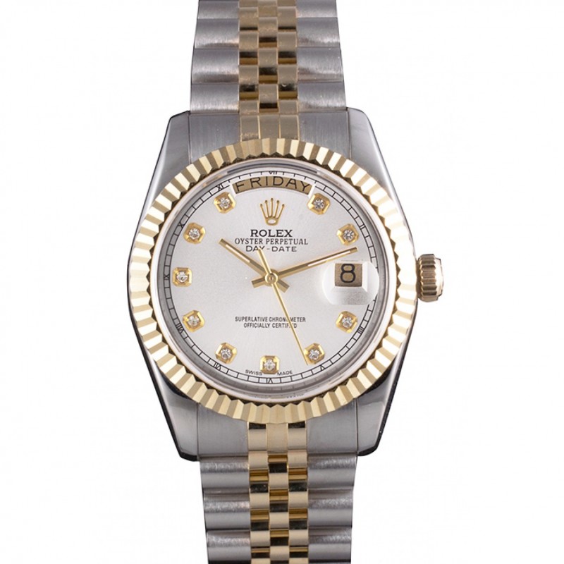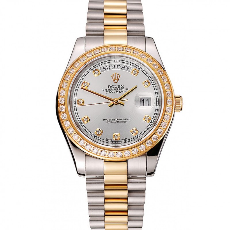 Barato Suiza Rolex Day-Date Esfera Blanca, la caja del diamante del oro de dos tonos pulsera de acero inoxidable 1453971