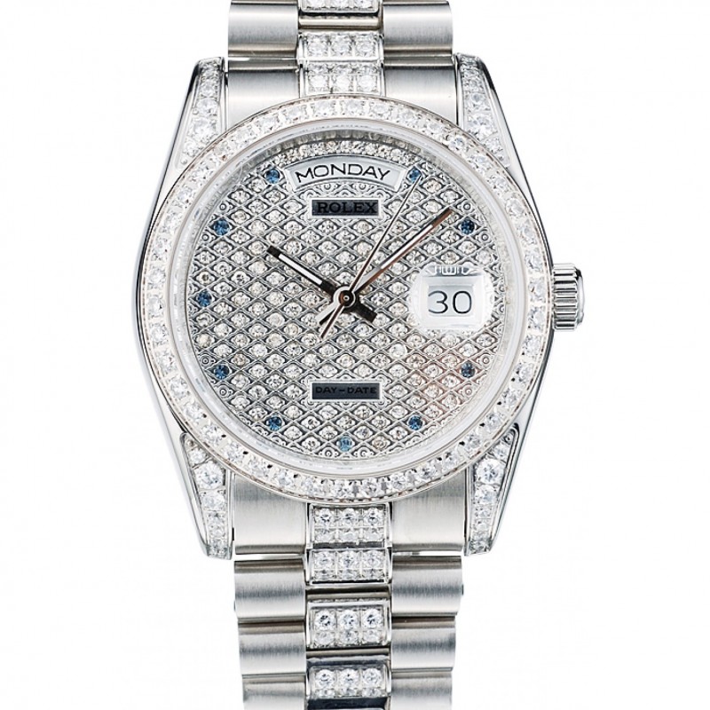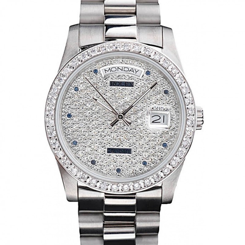 Pulsera de acero Rolex DayDate diamante plateado inoxidable diamante plateado Dial 41986