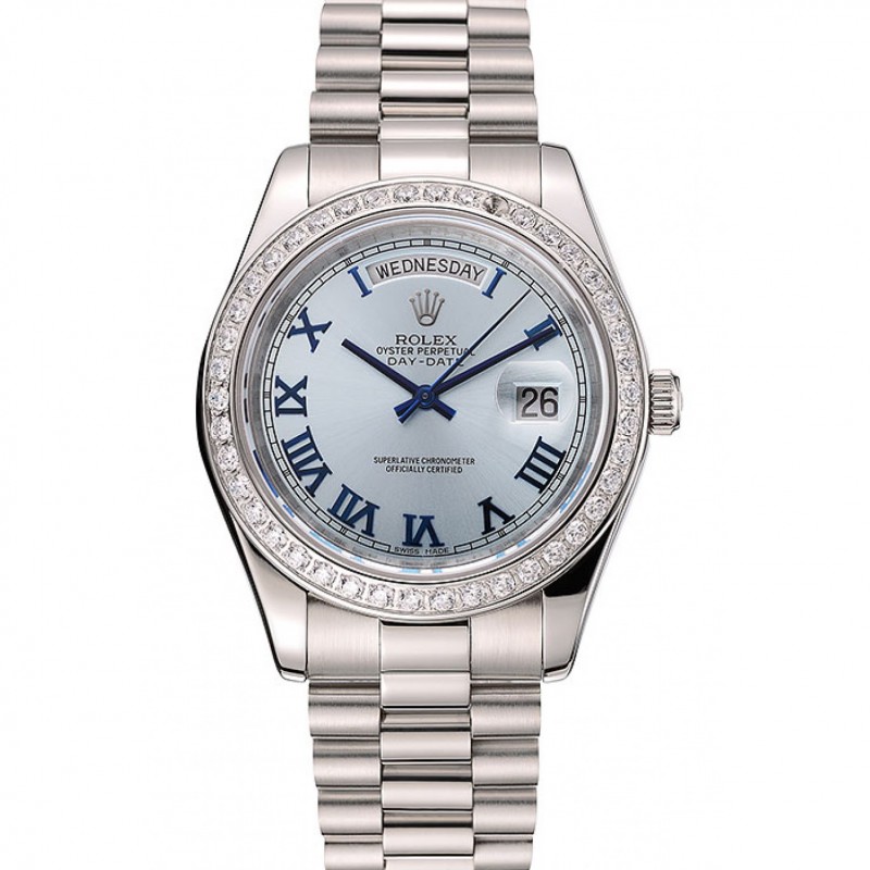 Rolex Day-Date Ice Blue Dial caja del diamante pulsera de acero inoxidable 1453962