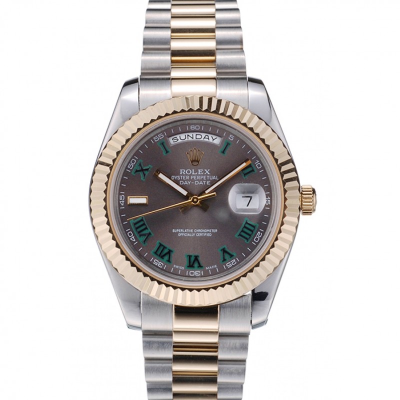 Acero Rolex DayDate suiza Oro inoxidable acanalado Bisel Esfera Gris 41909