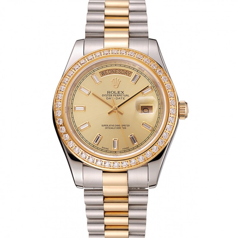 Suiza Rolex Day-Date Champagne Dial Diamond Bisel brazalete de dos tonos 1454103