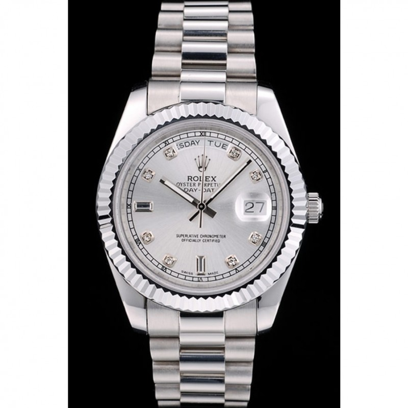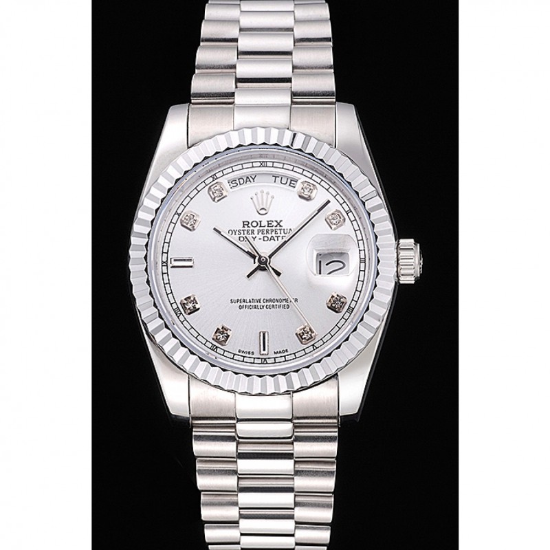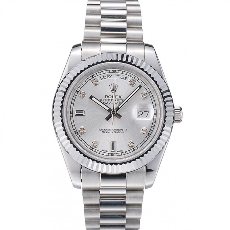 AAA Rolex Day-Date pulido acero inoxidable del dial de plata
